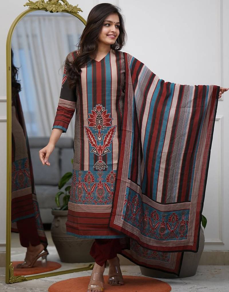 If you find the product for less we'll match it! Know MoreTop Fabric:-Rayon, Top Color:-Multicolor, Bottom Fabric:-Rayon, Bottom Color:-Maroon, Dupatta Fabric:-Mul Cotton, Dupatta Color:-Multicolor, Work:-Printed, Remark:-Kurta Pant Set (Size - S,M,L,XL,XXL), Note:-There might be slight color variation due to lightings & flash while photo shoot.