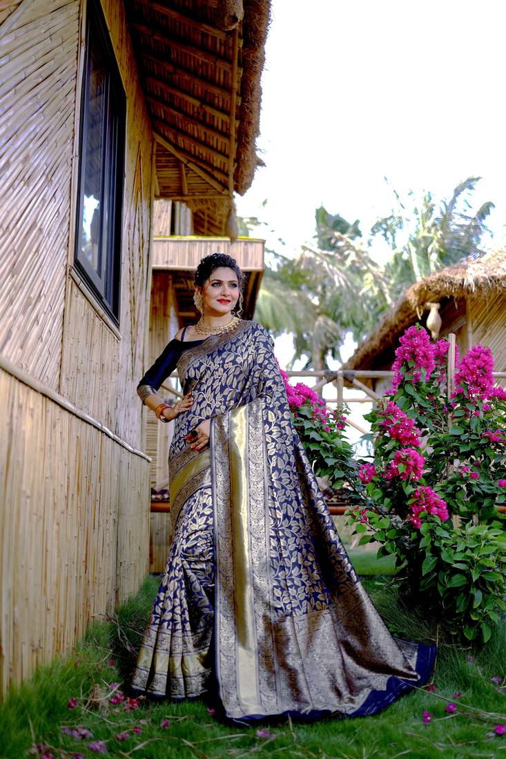 • Saree : Color- Navy Blue / Fabric- Banarasi • Blouse : Color- Navy Blue / Fabric- Banarasi Silk Saree Details