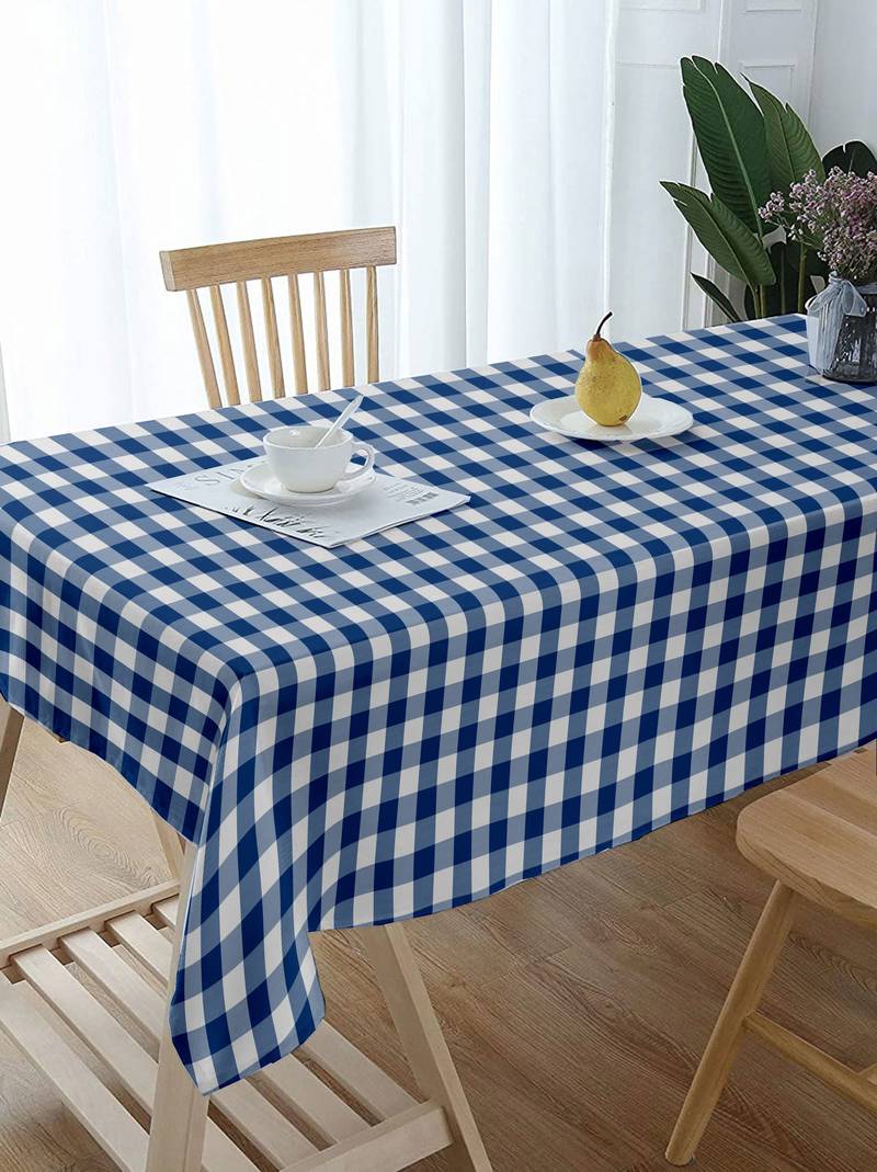Lushomes Buffalo Checks Royal Blue Plaid Dining Table Cover Cloth (Size 60 X 84 Inches, 6 Seater Table Cloth)