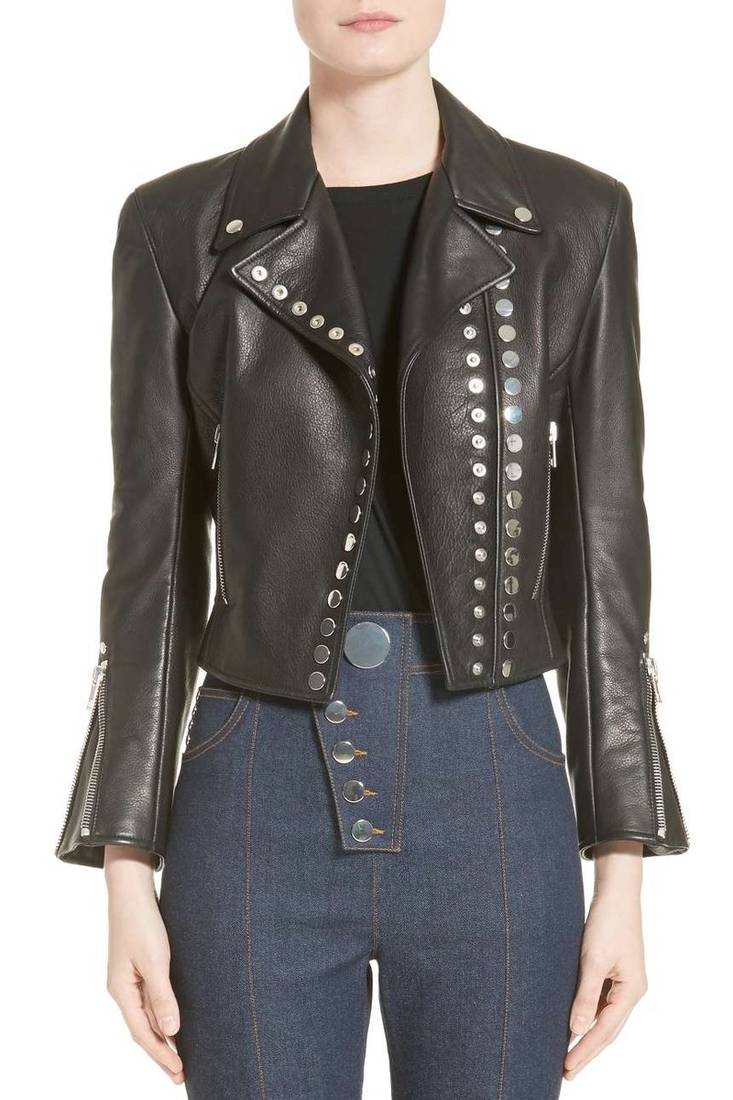 If you find the product for less we'll match it! Know MoreWomen's Lambskin Leather Cropped Studded Leather Moto Jacket Key Features