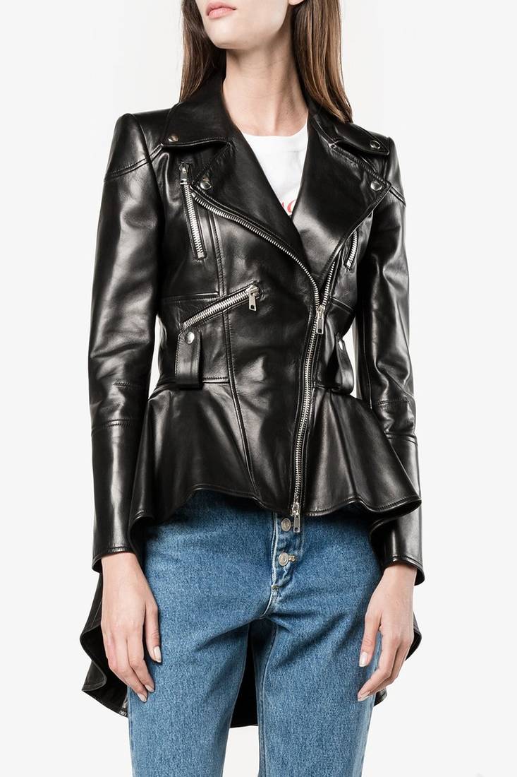 Women’s Black Lambskin Real Leather Peplum Biker Jacket Key Features: