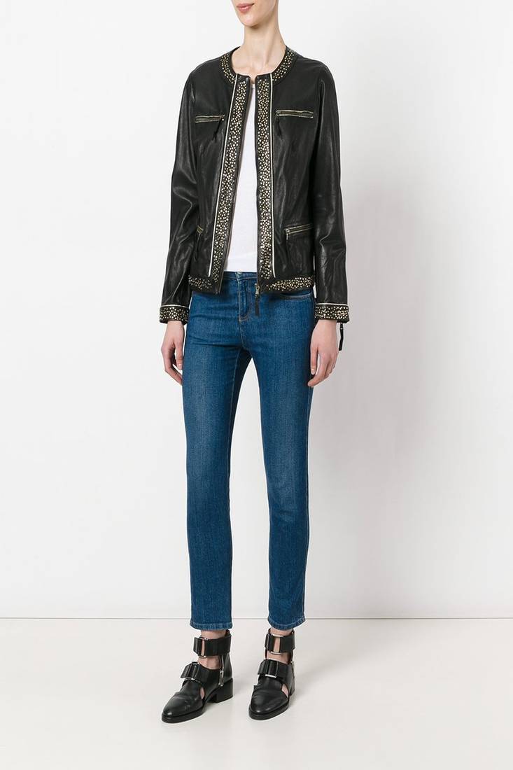 Women’s Black Studded Real Leather Jacket Stylish Zip Front Biker Jacket Key Features: