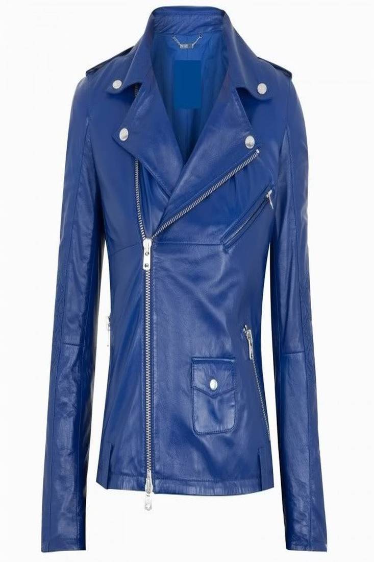 Women’s Blue Real Leather Biker Jacket Slim Fit Moto Style Key Features:
