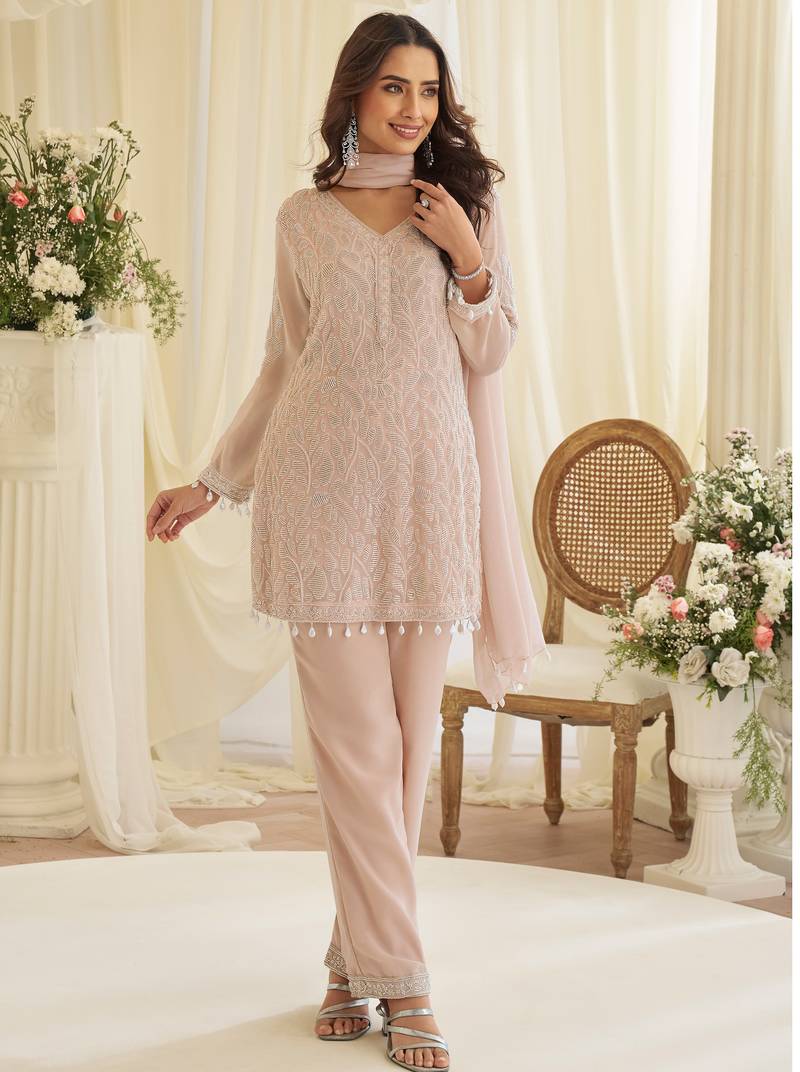 Dusty Pink Georgette Sequins Readymade Suits Free Size Up To 42 Stitched