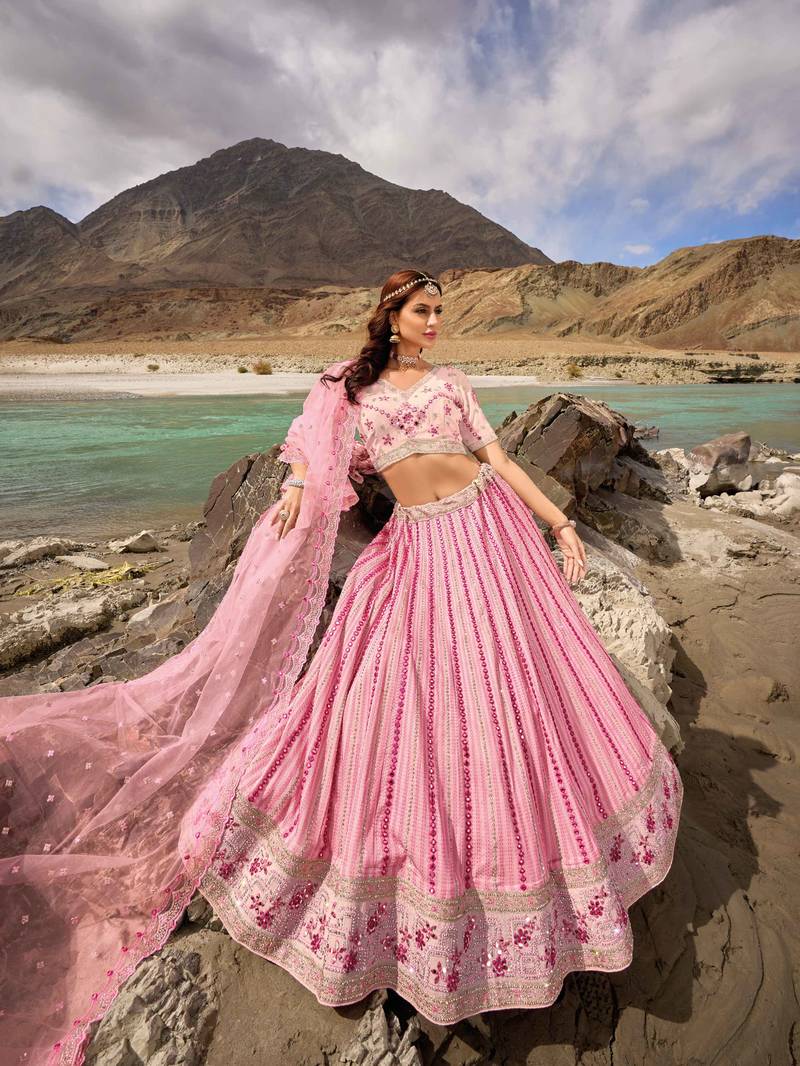 Light Pink Georgette Embroidered Lehenga Set