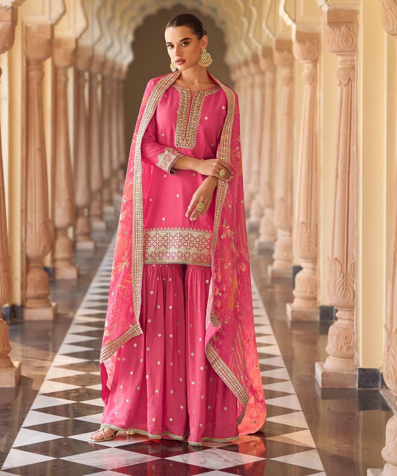• Fabric : Crepe • Color : Pink • Color : Pink Dupatta Details