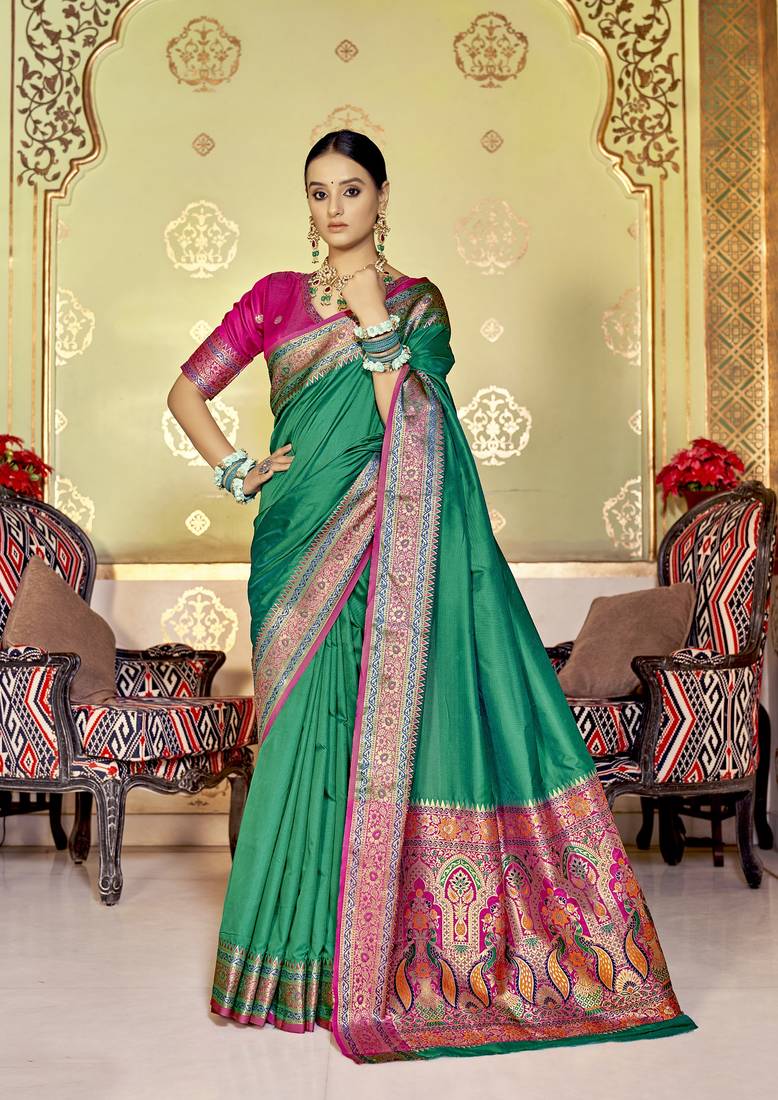 • Border : Designer Border • Color : Sea Green • Fabric Of : Banarasi Silk • Color : Sea Green Blouse Details