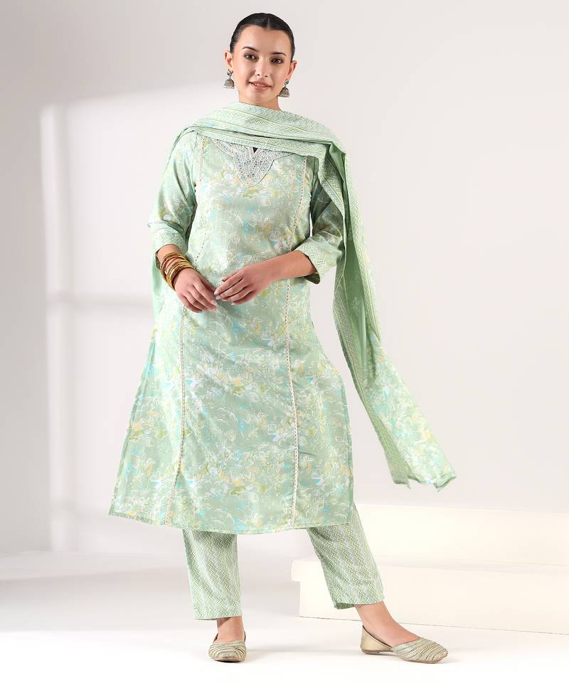 • Product Id : 4733308 • Package Details : 1 Kurta / 1 Pant / 1 Dupatta • Type : Kurta Sets • Region : India • Occasion : Casual • Fabric : Cotton • Work : Printed • Type : Screen Print • Look : Traditional • Sleeve : Quarter Sleeve • Neck Style : Round Neck • Color : Green • Stitching : Stitched • Length : 44.0 • Side Slit : Yes - 5-8 business days in addition to order delivery time.This service is provided to customers outside India only.