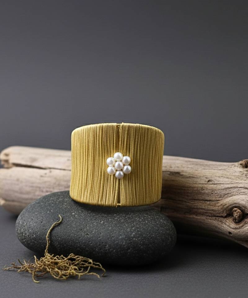 White Pearl Stone Gold Plated Adjustable Fancy Cuff Bracelet
