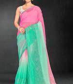Sea Green Digital Printed Swarovski Stone Border Work Saree
