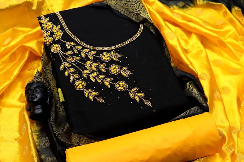 Women'S Black,Yellow Dress Material Having Color Unstitchedbottom Of Banarasi Silk Fabric And 1.80 M Color Dupatta Of Yellow Material With Https://Www.Dropbox.Com/Scl/Fo/V4A5Y6Zbftk3N2L4U0Tdv/H/M-Rnxklf1004_1.Jpg?Dl=0&Rlkey=Aloipgxz6Tvzia3Y9Wzcqhif8|| Images Are For The Referance Purpose Only, Color Of The Actual Product May Little Vary From The Image Due To Screen Resolution