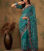 Manvaa Women's Green Color Soft Organza Embroderied Work Saree