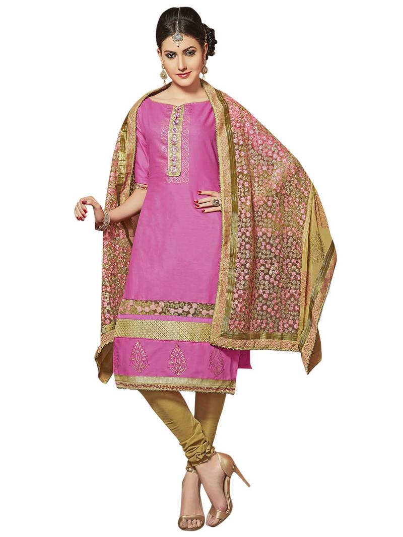 Pink Embroidered Cotton Salwar Unstitched