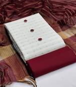 Women'S White Unstitched Designer Weaving Cotton Jacquard Dress Material Having Maroon Color Bottom Of Cotton Fabric And Maroon Color Dupatta Of Cotton Material With Charming White Colour In Cotton Jacquard Fabric With Work Of Designer Weaving|| Images Are For The Referance Purpose Only, Color Of The Actual Product May Little Vary From The Image Due To Screen Resolution