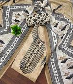 Women's Beige Unstitched Embroiderd Cotton Dress Material