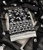 Women's Black Unstitched Embroidered Chanderi Cotton Dress Material