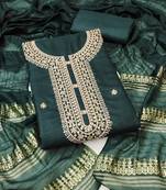 Women's Green Unstitched Heavy Zari Sequence Embroidery Slub Cotton Dress Material (In2042grn)