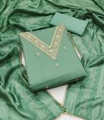 Women's Light Green Unstitched Embroidery Chanderi Silk Dress Material