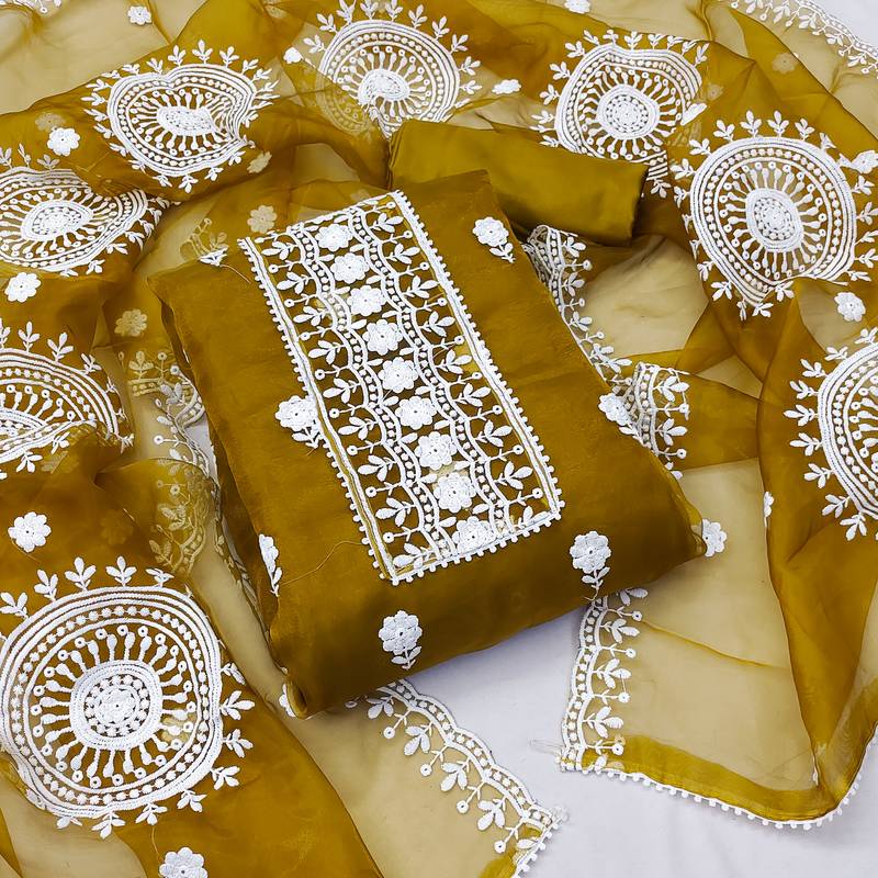 Women'S Mehandi Unstitched Heavy Thread Embrodiery And Fancy Border With Embroidered Dupatta Organza Dress Material Having Mehandi Color Unstitched Bottom Of Santoon Fabric And Mehandi Color Dupatta Of Organza Material With Charming Mehandi Colour In Organza Santoon Fabric With Work Of Heavy Thread Embrodiery And Fancy Border With Embroidered Dupatta|| Images Are For The Referance Purpose Only, Color Of The Actual Product May Little Vary From The Image Due To Screen Resolution