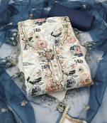 Women's Multi Unstitched Print & Handwork Jam Cotton Dress Material