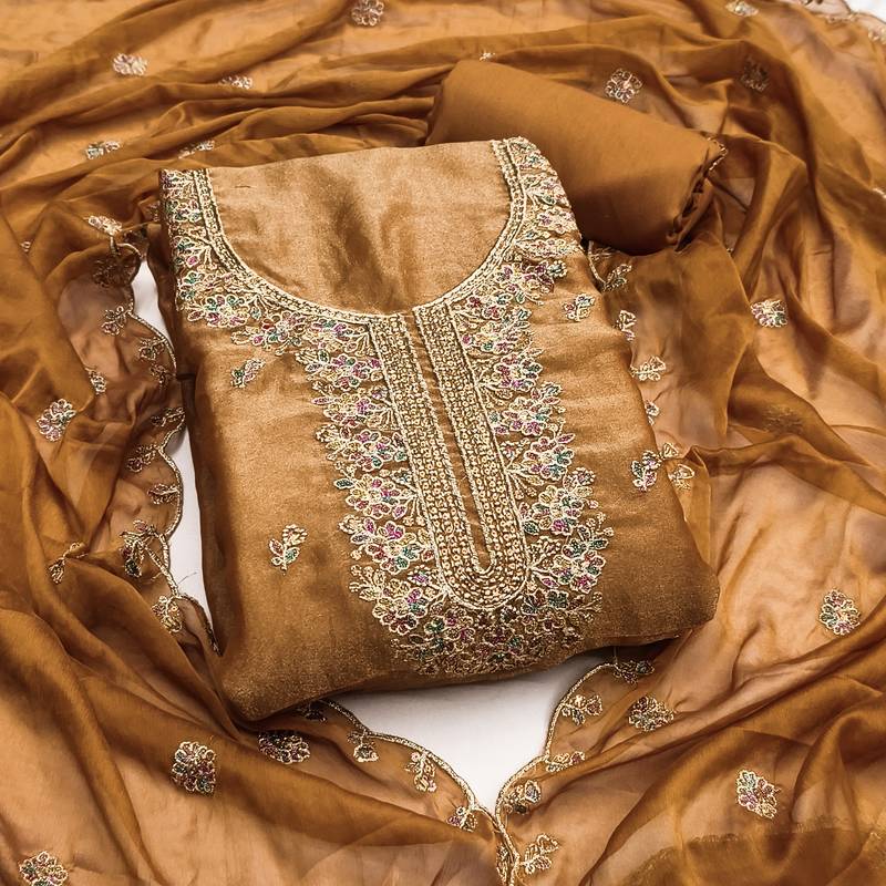 Women's Mustard Embroidery Georgette Dress Material Unstitched