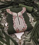 Women's Olive Green Unstitched Embroidered Georgette Dress Material