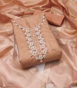 Women's Peach Unstitched Heavy Handwork Simmer Cotton Dress Material