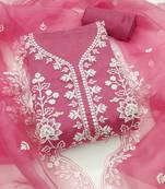 Women's Pink Unstitched Embroidered Organza Dress Material
