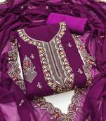 Women's Purple Unstitched Embroiderd Georgette Dress Material