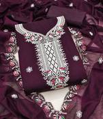 Women's Purple Unstitched Heavy Thread Embroidered Chanderi Cotton Dress Material