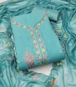 Women's Sea Green Unstitched Thread Sequence Embroidery Pure Cotton Silk Dress Material