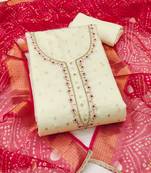 Women's White Unstitched Weaving & Handwork Modal Banarasi Jacquard Dress Material (Msmfc11610d)