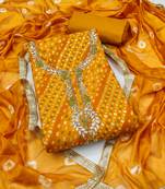 Women's Yellow Unstitched Bandhani Print Handwork Jam Cotton Dress Material