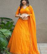 This Orange Gorgeous Lehenga Choli Is Semi Stitched And Comes With Fully Unstitched Choli Material That Can Be Stitched Up To 42 Inches.Â