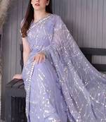 Lavender Georgette Sequin Embroidered Party Wear Saree With Blouse