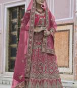 Auspicious Pink Hand Work And Heavy Embroidered Velvet Semi Stitched Wedding Lehenga