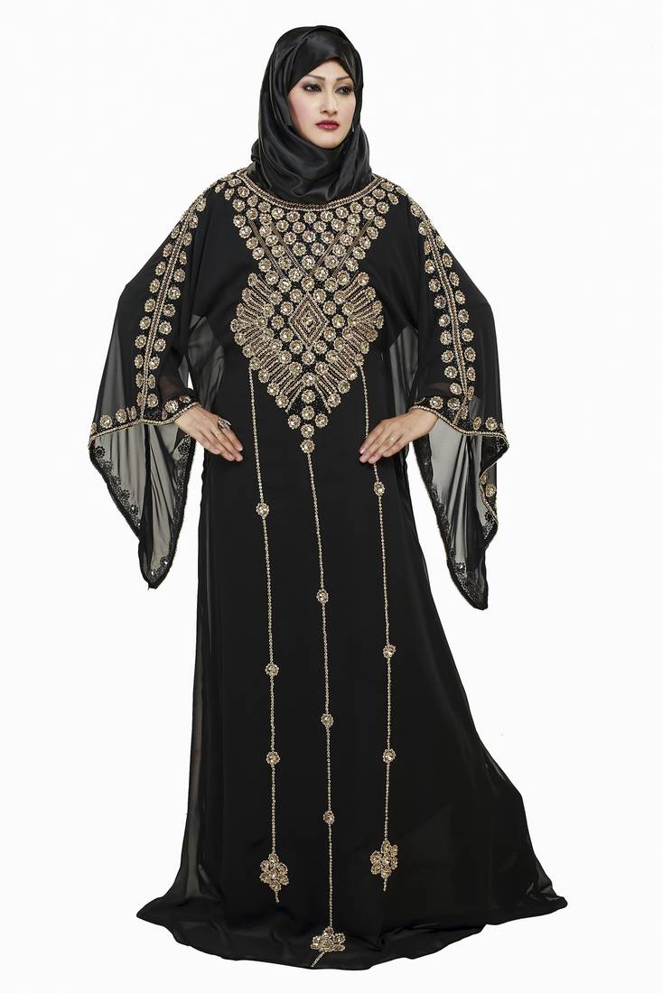 • Product Id : 2732140 • Package Details : 1 Kaftan • Type : Kaftans • Occasion : Party Wear • Fabric : Georgette • Work : Embroidered • Type : Zari Work • Look : Contemporary • Color : Black • Stitching : Stitched • Length : 60 • Width : Na • Height : Na Stitching [+]
