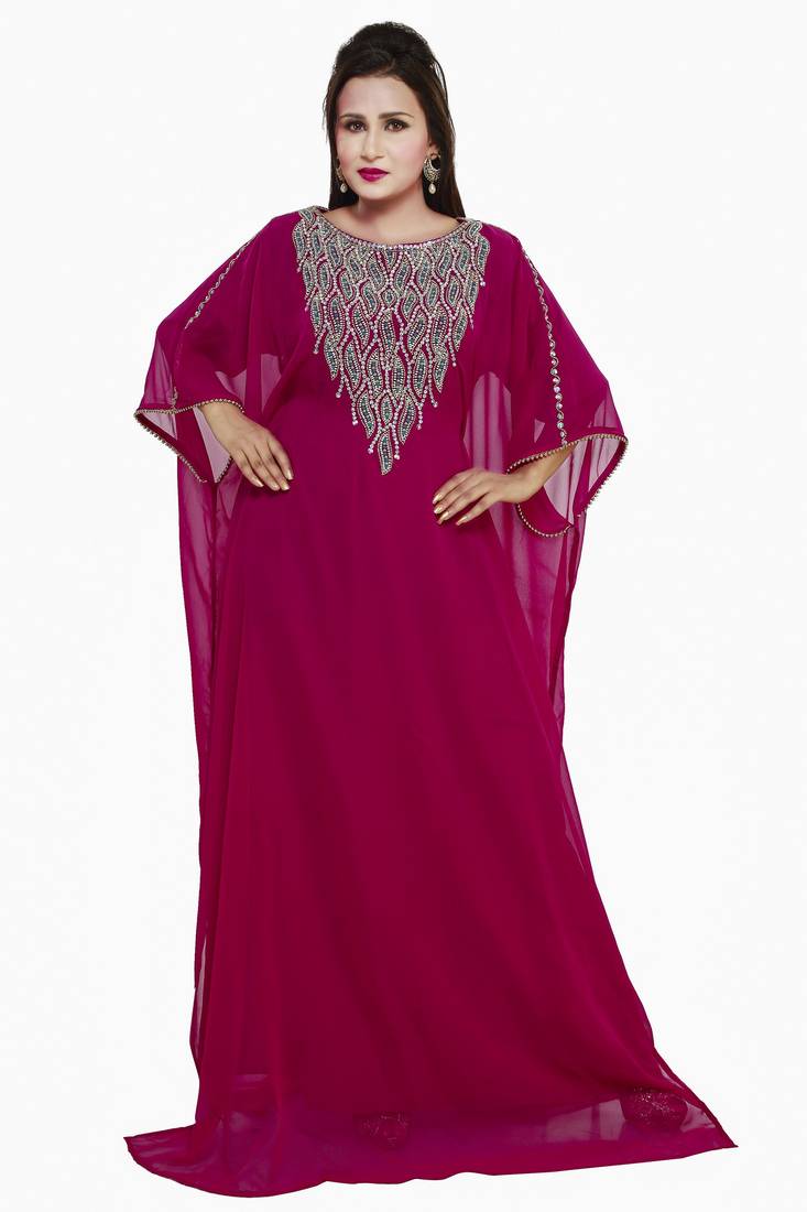 • Product Id : 2732083 • Package Details : 1 Kaftan • Type : Kaftans • Occasion : Party Wear • Fabric : Georgette • Work : Embroidered • Type : Zari Work • Look : Contemporary • Stitching : Stitched • Length : 60 • Width : Na • Height : Na Stitching [+]