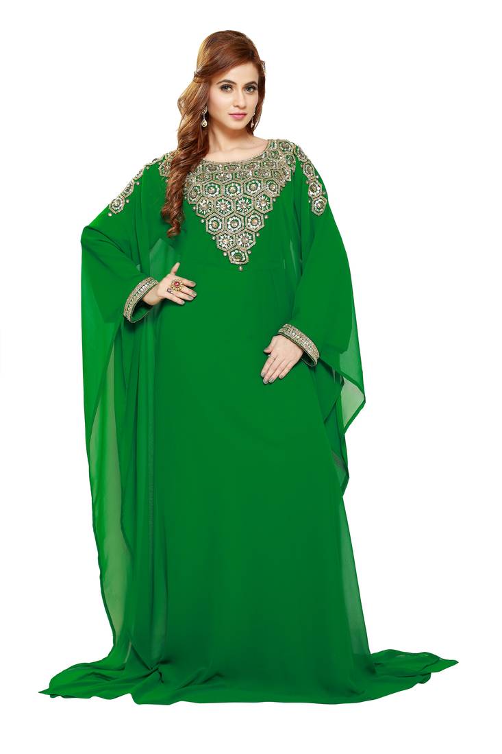 • Product Id : 2732155 • Package Details : 1 Kaftan • Type : Kaftans • Occasion : Party Wear • Fabric : Georgette • Work : Embroidered • Type : Zari Work • Look : Contemporary • Color : Green • Stitching : Stitched • Length : 60 • Width : Na • Height : Na Stitching [+]