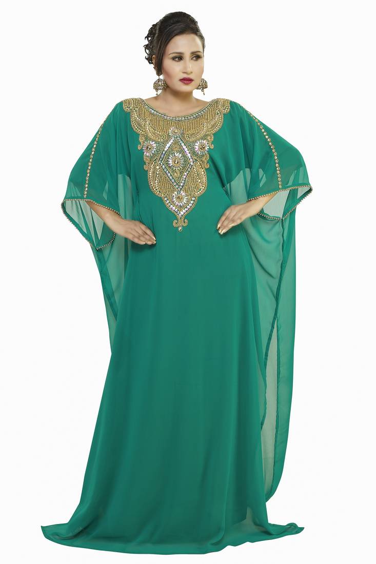 • Product Id : 2732096 • Package Details : 1 Kaftan • Type : Kaftans • Occasion : Party Wear • Fabric : Georgette • Work : Embroidered • Type : Zari Work • Look : Contemporary • Color : Green • Stitching : Stitched • Length : 60 • Width : Na • Height : Na Stitching [+]