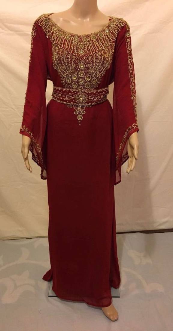 • Product Id : 2720085 • Package Details : 1 Kaftan • Type : Kaftans • Region : Muslim • Occasion : Party Wear • Fabric : Georgette • Work : Embroidered • Type : Zari Work • Look : Contemporary • Color : Maroon • Stitching : Stitched • Length : 60 • Width : Na • Height : Na Stitching [+]