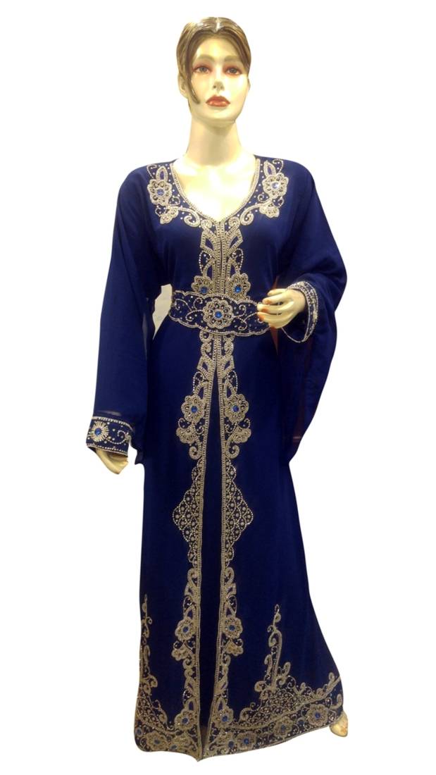 Navy Blue Embroidered Georgette Islamic Kaftans With Zari & Stone Work