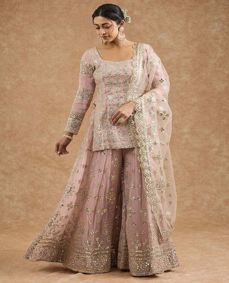 Pink Georggette Gota Applique Sharara Kurti Set Stitched