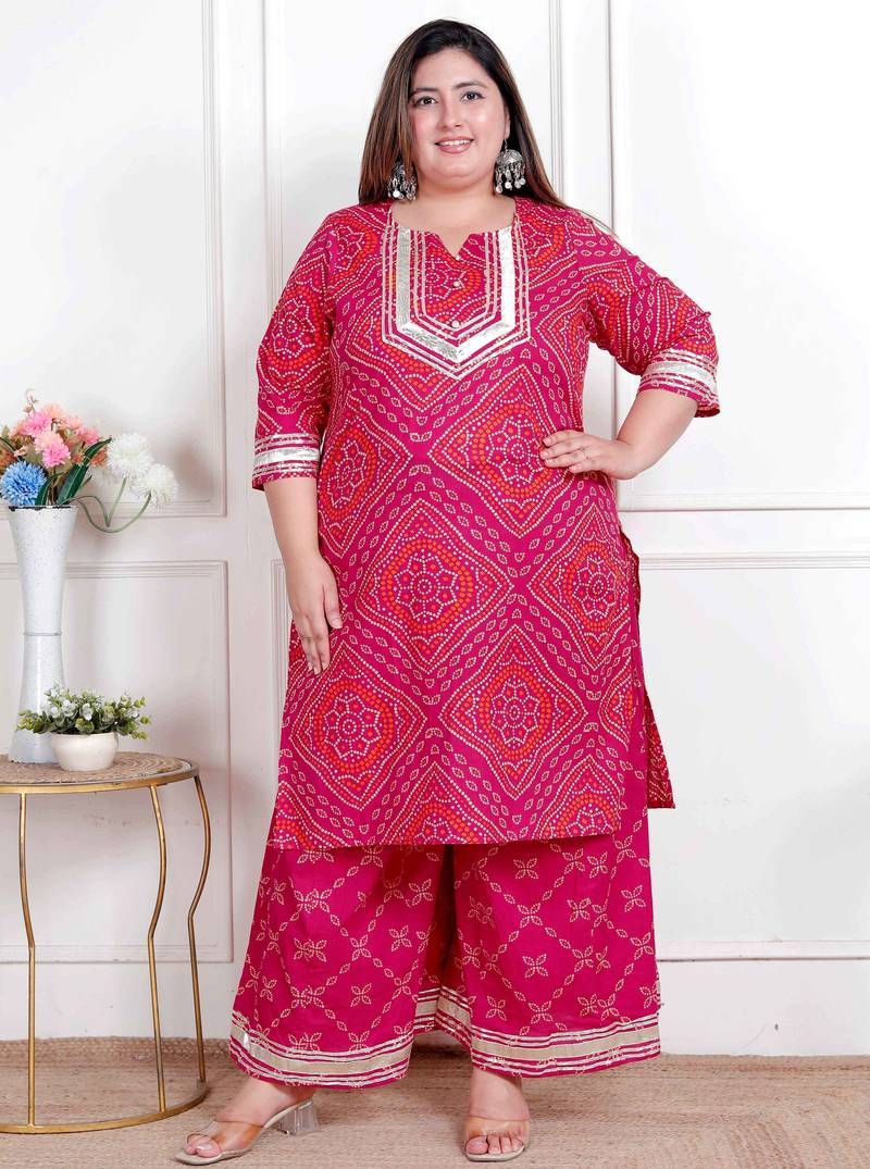 Plus Size Women's Embellished Ethnic Cotton Kurta With Palazzo Stitched