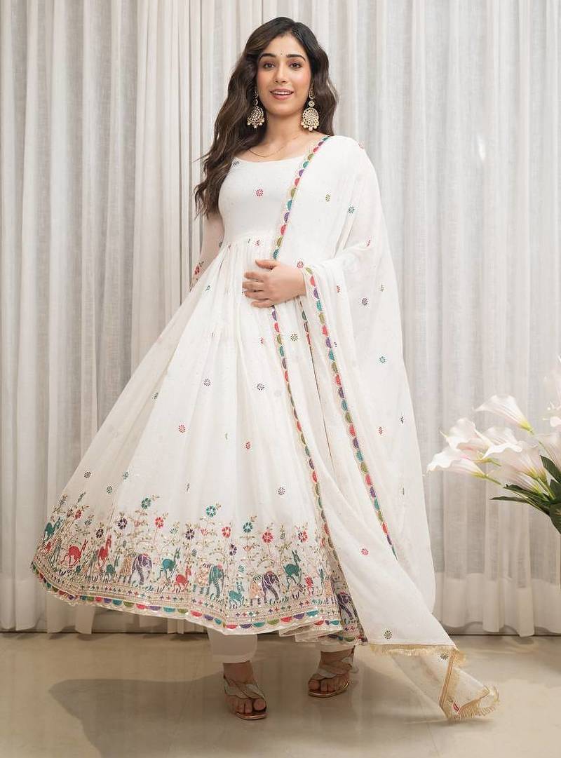 White Georgette Party Wear Embroidery Suit Set Stitched