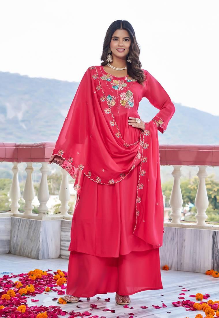 • Product Id : 4706638 • Package Details : 1 Kurta/ 1pant / 1dupatta • Type : Kurta Sets • Occasion : Casual • Fabric : Chanderi • Work : Embroidered • Look : Designer • Sleeve : Quarter Sleeve • Neck Style : Round Neck • Color : Pink • Stitching : Stitched Payments [+]