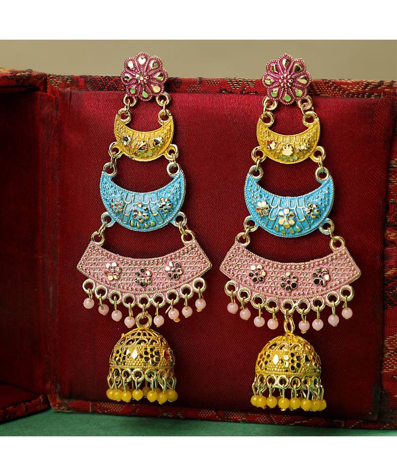 Traditional Enameled Multicolor Dangle Drop Jhumka Earring for Girls and Women