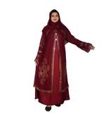 • Product Id : 3920005 • Package Details : 1 Abaya/1 Hijab • Type : Abayas • Region : Other • Fabric : Art Silk • Work : Embroidered • Look : Designer • Sleeve : Full Sleeve • Neck Style : Round Neck • Color : Maroon,Gold • Stitching : Stitched • Length : 57.0 • Width : 16.0 Payments [+]