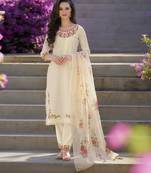 • Product Id : 4318125 • Package Details : 1 Kurta, 1 Pant And 1 Dupatta • Type : Readymade Suits For Women • Work : Embroidered • Type : Beads • Look : Designer • Sleeve : Quarter Sleeve • Neck Style : Round Neck • Fabric : Viscose • Color : Off White • Stitching : Stitched Payments [+]