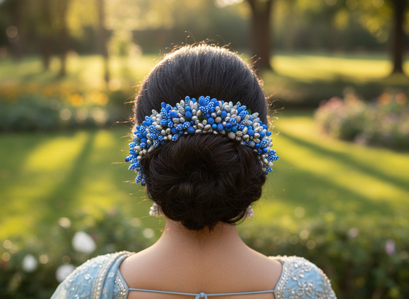 Blue And Silver Pollens Hair Gajra
